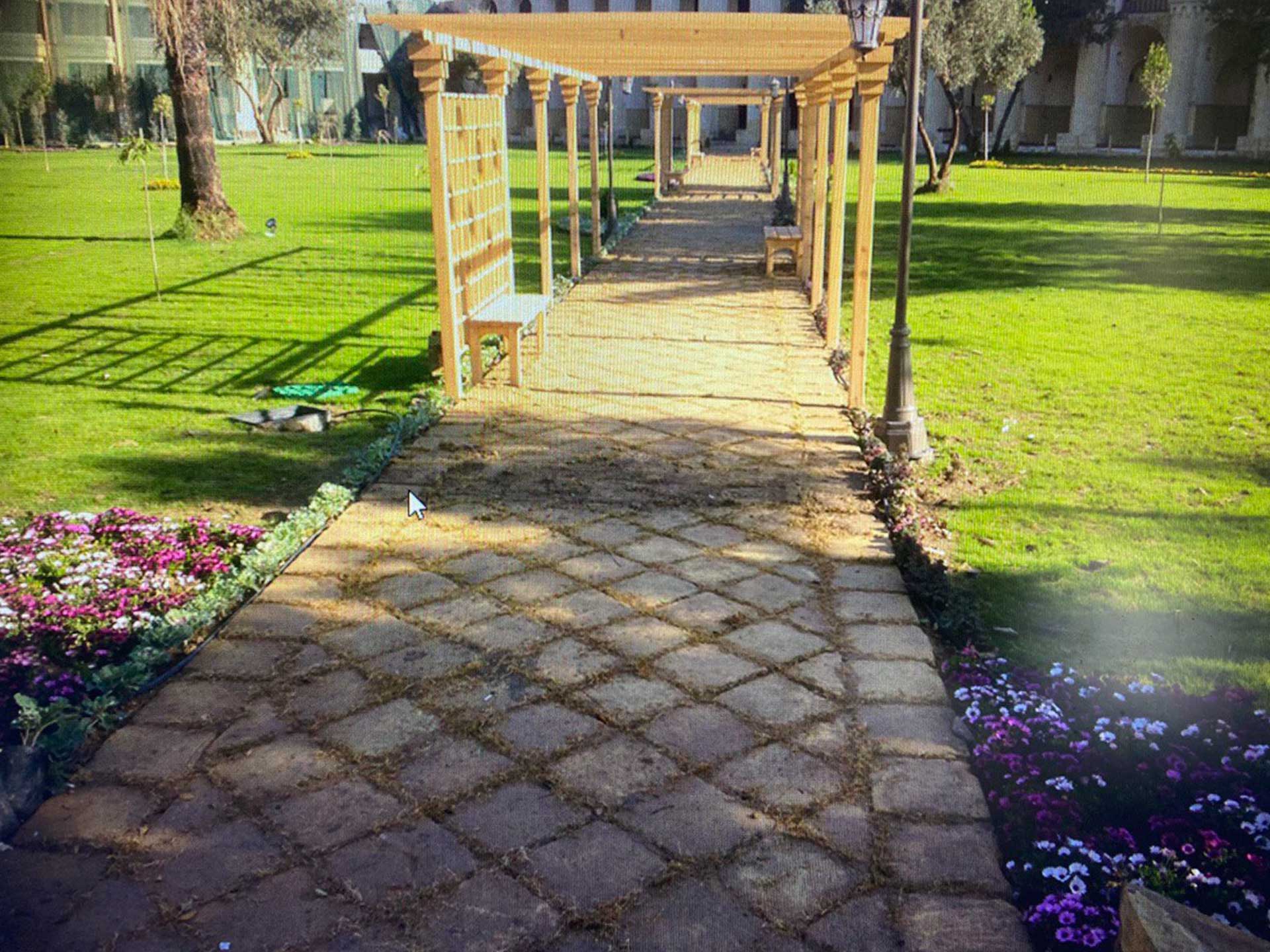 إعداد تصميم مبسّط للمدخل الجانبي للفيلا، مع اختيار أشجار مميّزة ذات قيمة فنية لمسار الوصول. تمّت دراسة مساقط النظر من داخل الغرف لتحقيق جمالية متكاملة بين الداخل والخارج. جارٍ استكمال تصاميم المداخل الرئيسية.