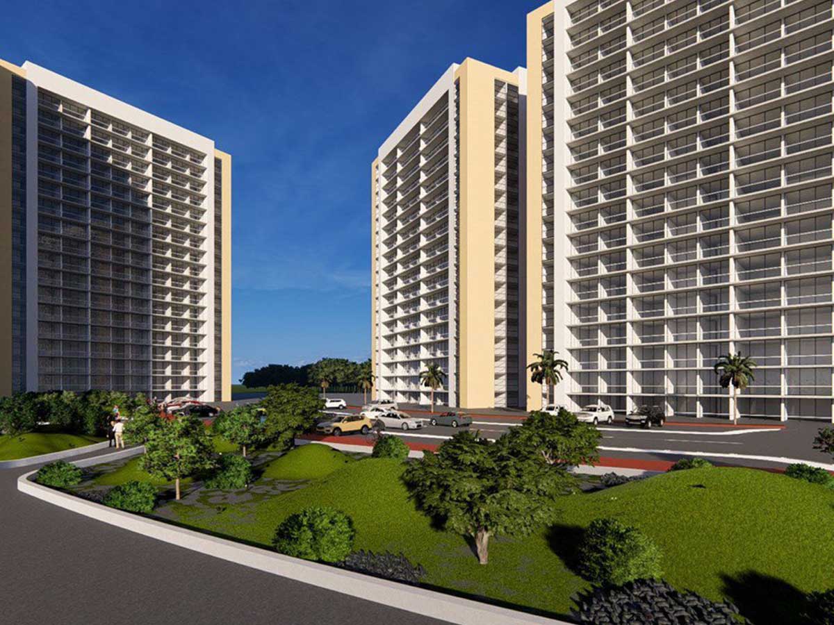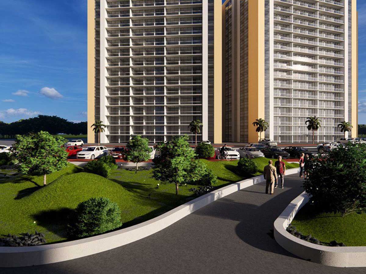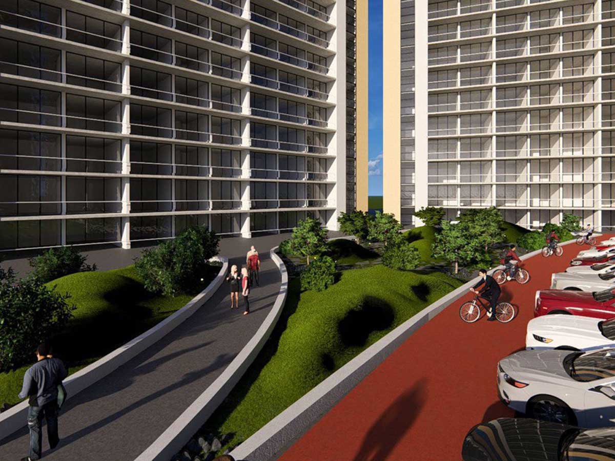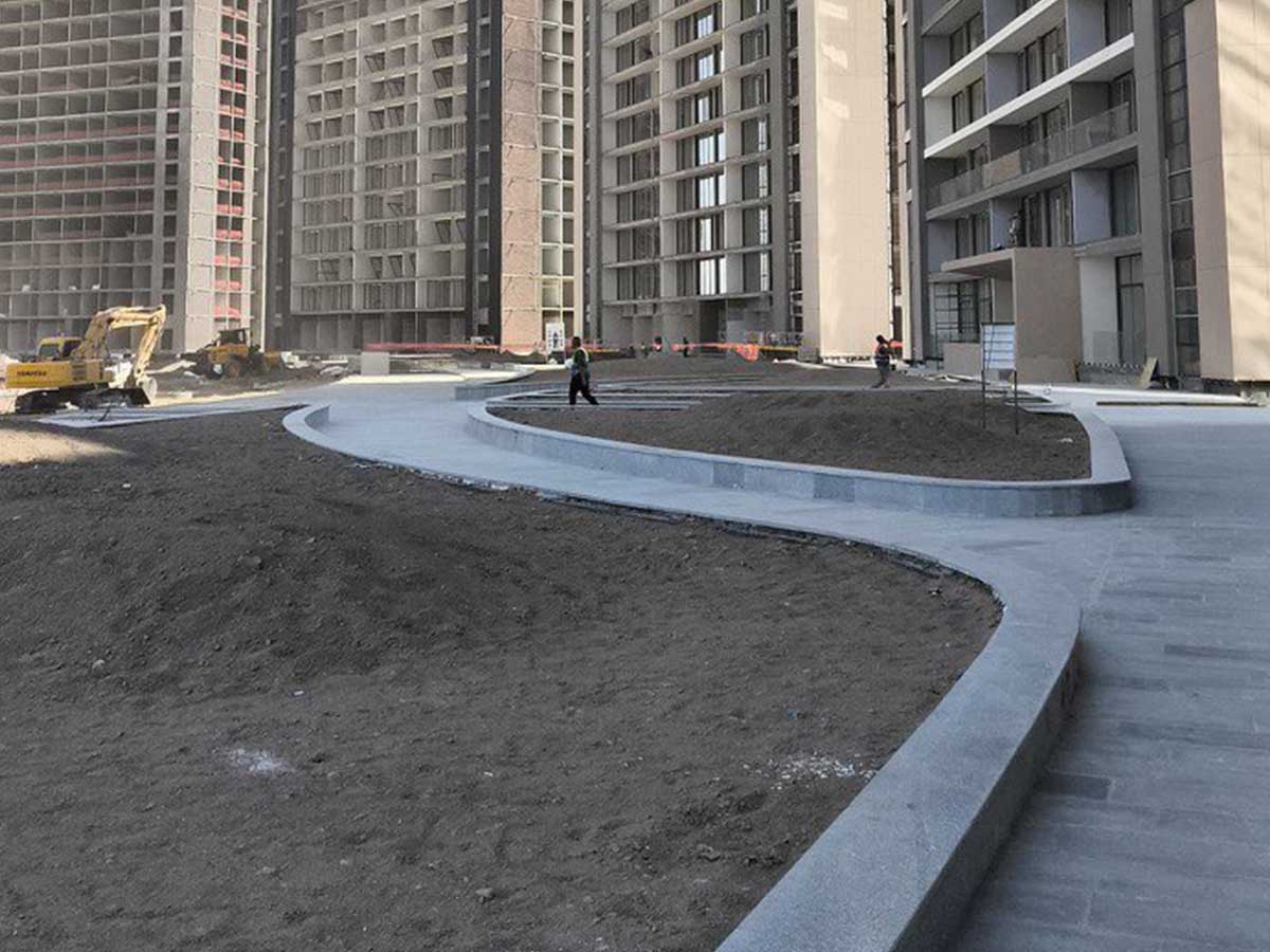تنسيق حدائق حديثة للمجمع التجاري والسكني مع أنظمة موفرة للطاقة.