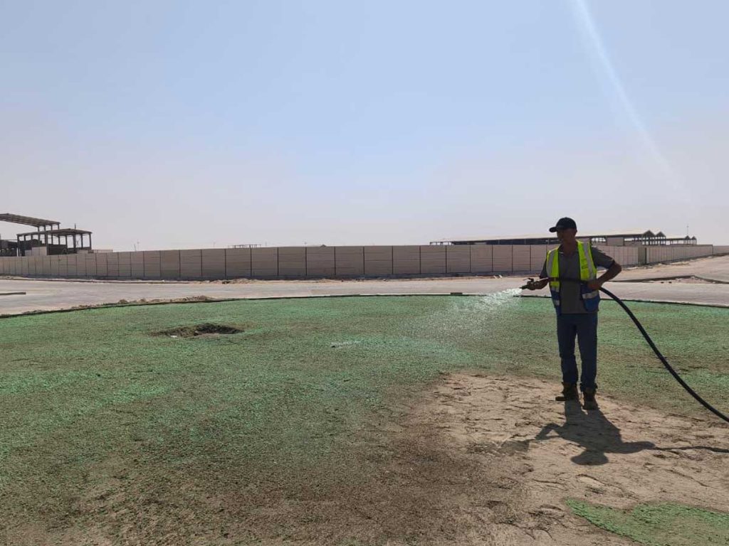 Rapid turf establishment and slope stabilization using a slurry of seed, mulch, fertilizer, and tackifier—specified for Iraq’s climate and soils, with clear aftercare and irrigation plans.